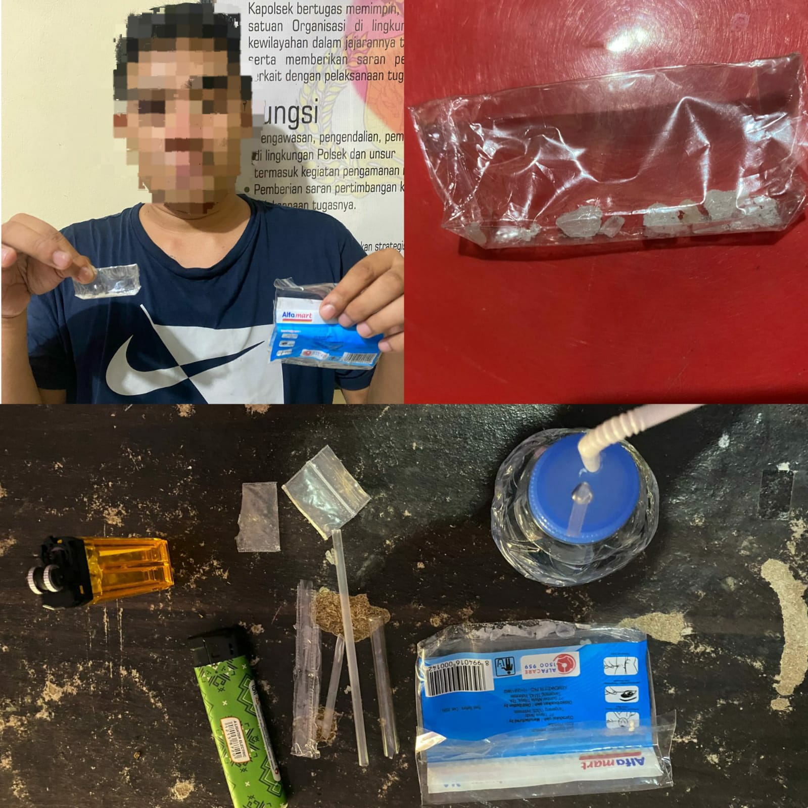 Dalam penggeledahan tersebut, petugas menemukan sejumlah barang bukti mencurigakan. Di antaranya, satu plastik cotton buds yang diduga berisi narkotika jenis sabu, satu alat hisap sabu/bong, satu alat timbang digital, dua potongan plastik kip, dua korek api, dan satu pireks kaca.