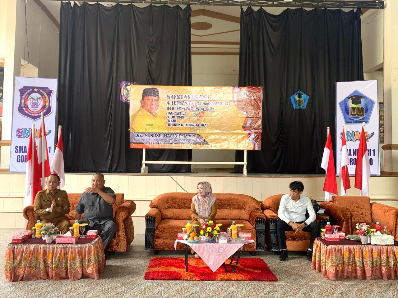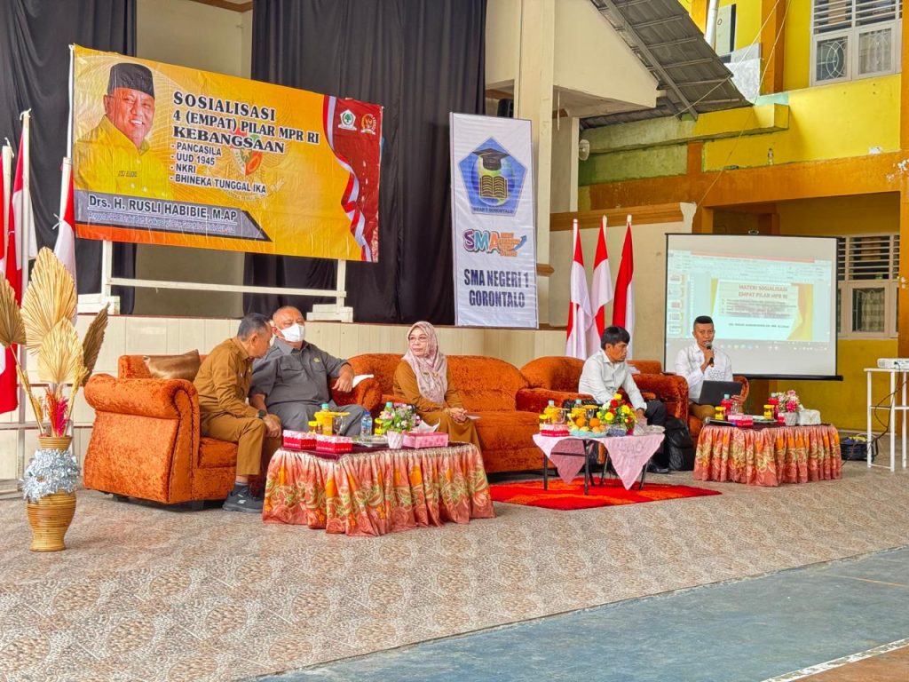 INFOO24JA.ID, Gorontalo – Anggota DPR RI dari Daerah Pemilihan (Dapil) Gorontalo, Rusli Habibie, menggelar sosialisasi Empat Pilar Kebangsaan di hadapan para siswa SMA Negeri 1 Kota Gorontalo, Selasa (25/2). Kegiatan ini bertujuan untuk memperkuat pemahaman generasi muda terhadap nilai-nilai dasar bangsa, yakni Pancasila, Undang-Undang Dasar (UUD) 1945, Negara Kesatuan Republik Indonesia (NKRI), dan Bhinneka Tunggal Ika.