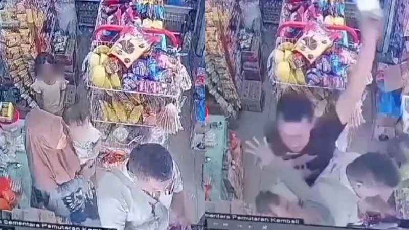 Video kejadian yang diunggah akun X @bacottetangga__ memperlihatkan seorang ibu berjilbab cokelat tengah menggendong bayi dan menggandeng seorang anak balita saat mengantre di kasir. Tiba-tiba, seorang pria yang merupakan suaminya datang dengan wajah penuh emosi dan langsung melayangkan pukulan. Korban berusaha menghindar sambil melindungi kepalanya, sementara pelaku tetap menyerang dan menunjuk-nunjuk wajah istrinya.