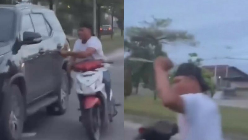 Dalam video yang diunggah akun Instagram @medsoszone, tampak pria tersebut mengendarai sepeda motor tanpa mengenakan helm sambil mengacungkan pisau. Ia berusaha mengejar dan memepet beberapa mobil yang melintas, lalu menyayat serta memukul kaca dan bodi kendaraan tersebut menggunakan senjata tajam.
