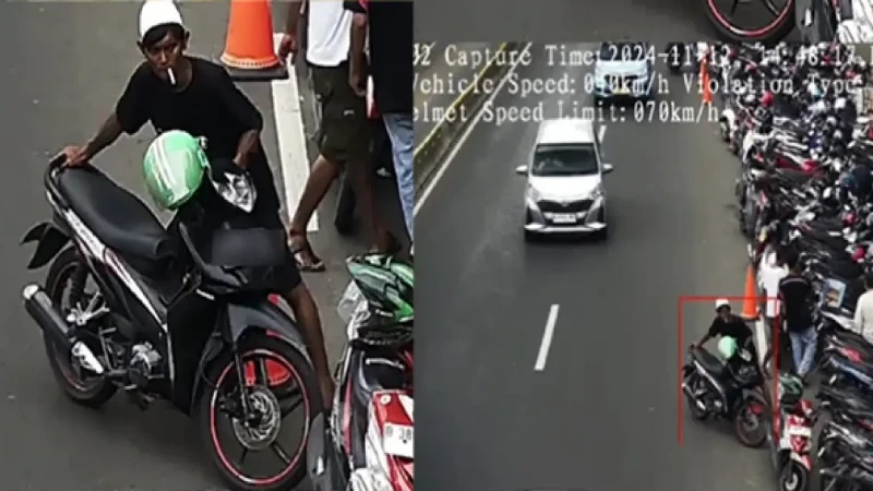 Dalam sebuah video viral yang diunggah akun Instagram @fakta.indo, tampak seorang pria—diduga tukang parkir—terekam kamera ETLE saat mendorong sepeda motor di bahu jalan. Lokasi parkir yang terlihat tidak resmi itu disebut-sebut berada di pinggir jalan raya.