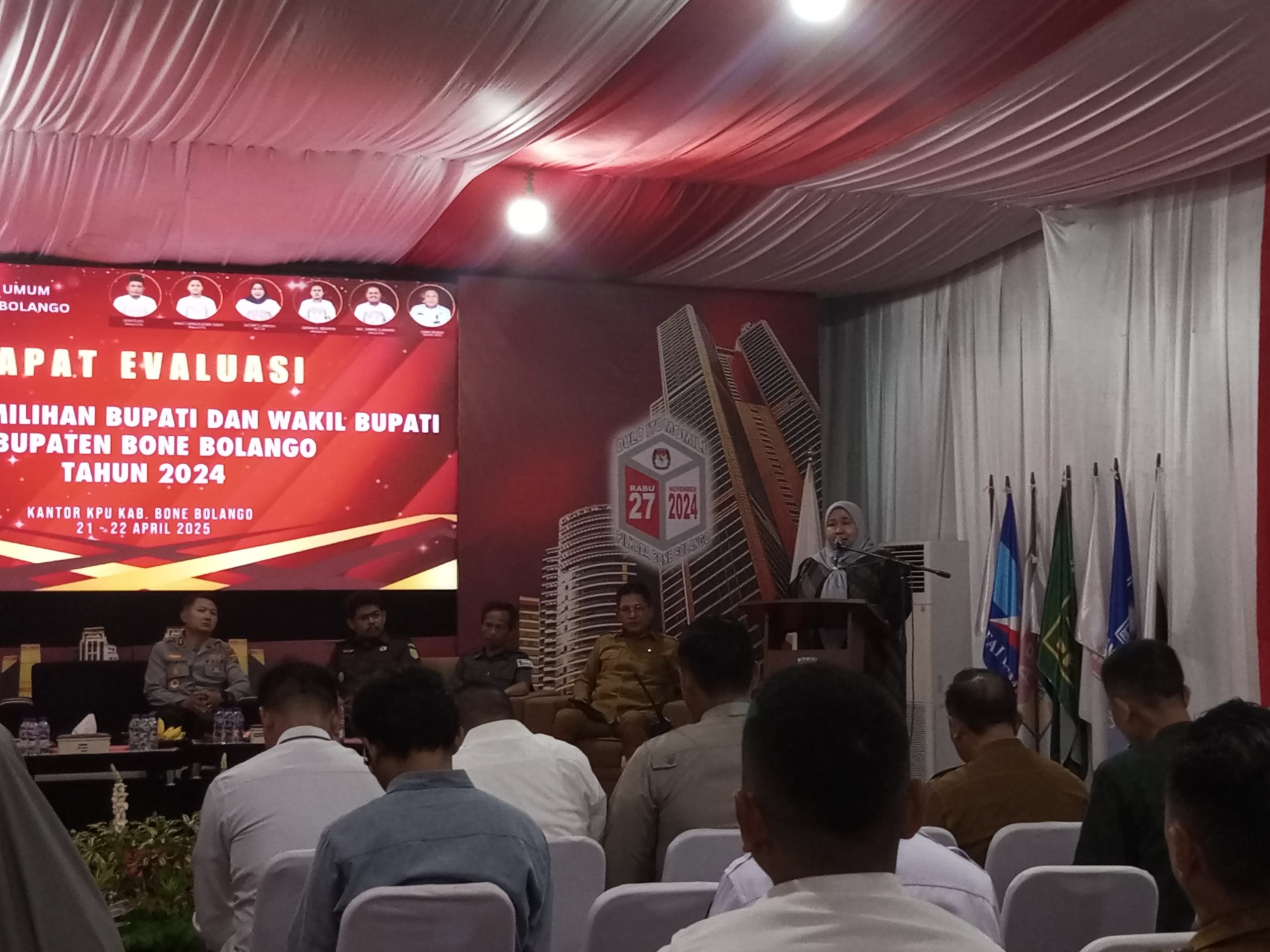 INFOO24JAM.ID, Gorontalo (Bone Bolango) – Komisi Pemilihan Umum (KPU) Kabupaten Bone Bolango menggelar Rapat Evaluasi Tahapan Pilkada 2024 pada Senin (21/04/2025) bertempat di Aula Kantor KPU Bone Bolango.