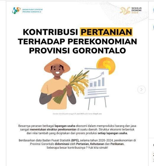 INFOO24JAM.ID, Gorontalo – Sektor pertanian, kehutanan, dan perikanan terus menunjukkan peran sentral dalam menggerakkan roda perekonomian Provinsi Gorontalo. Data Badan Pusat Statistik (BPS) mencatat, sepanjang tahun 2020 hingga 2024, sektor ini menyumbang lebih dari sepertiga atau sekitar 35 persen terhadap total Produk Domestik Regional Bruto (PDRB) provinsi tersebut.