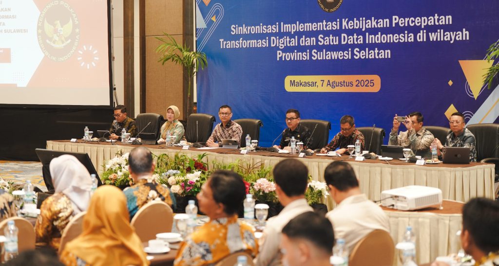 INFOO24JAM.ID,-MAKASSAR — Pemerintah Provinsi Sulawesi Selatan mendapat kehormatan menjadi tuan rumah forum strategis nasional bertajuk Rapat Koordinasi Sinkronisasi Implementasi Kebijakan Percepatan Transformasi Digital dan Satu Data Indonesia yang digelar di Hotel Claro, Makassar, Kamis (7/8/2025).