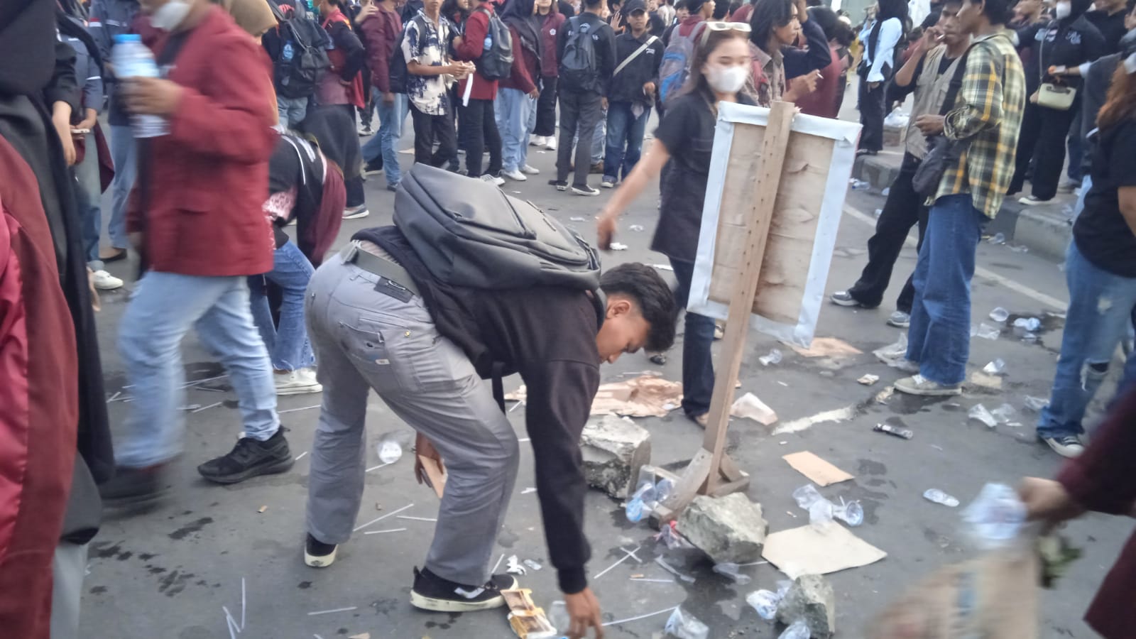 Massa aksi yang tergabung dalam Aliansi Merah Maroon itu memadati kawasan bundaran sejak siang hingga sore hari. Mereka menyuarakan penolakan terhadap sejumlah kebijakan yang dinilai tidak pro-rakyat melalui orasi dan spanduk-spanduk tuntutan.